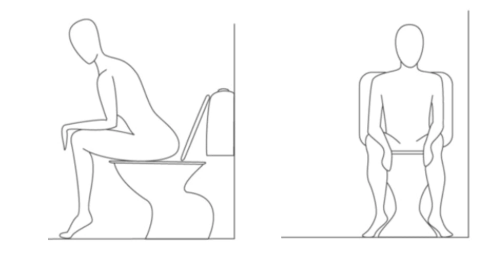 One key point of these two diagrams on urination to focus on is there is a slight lean forward where you can rest your hands on your knees, or even rest your forearms down on your thighs. By leaning forward, you are placing a little more pressure over your bladder (located just behind your pubic bone), and it can create a “milking effect” to aid in voiding. As you assume this position, make sure your back is straight versus rounded. A rounded spine will interrupt the mechanics of maintaining more pressure over your bladder.